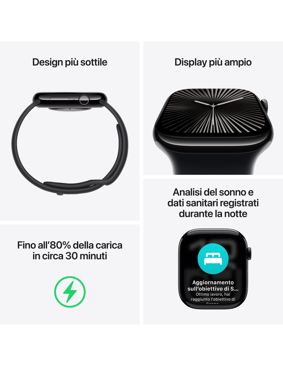 Più schermo. Più stile. Più sottile.\n\nScopri Apple Watch Series 10. Un display più grande per vedere ancora più cose. Un design più sottile e leggero. Funzioni evolute per la salute e il fitness. E ri