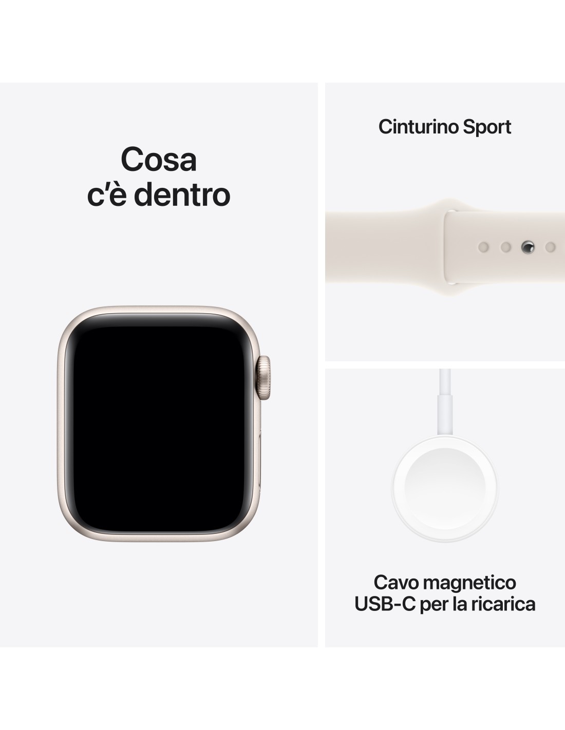 Ha tutto per farsi amare.\nHa funzioni essenziali per restare in contatto con chi vuoi e vivere una vita attiva, sana e sicura.\n\n• PERCHÉ APPLE WATCH SE – Ti dà tutto l’essenziale per motivarti e far