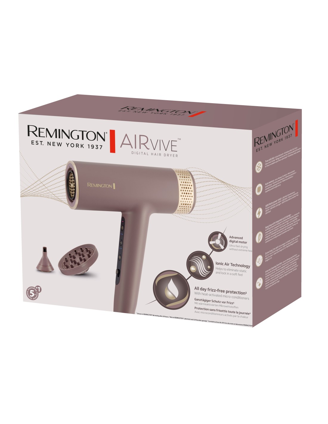 Tecnologia ad Aria Ionica Micro particelle che si attivano con il calore e vengono rilasciate sui capelli tramite il flusso d\'aria per una protezione anti-crespo che dura tutto il giorno¹ Motore digit