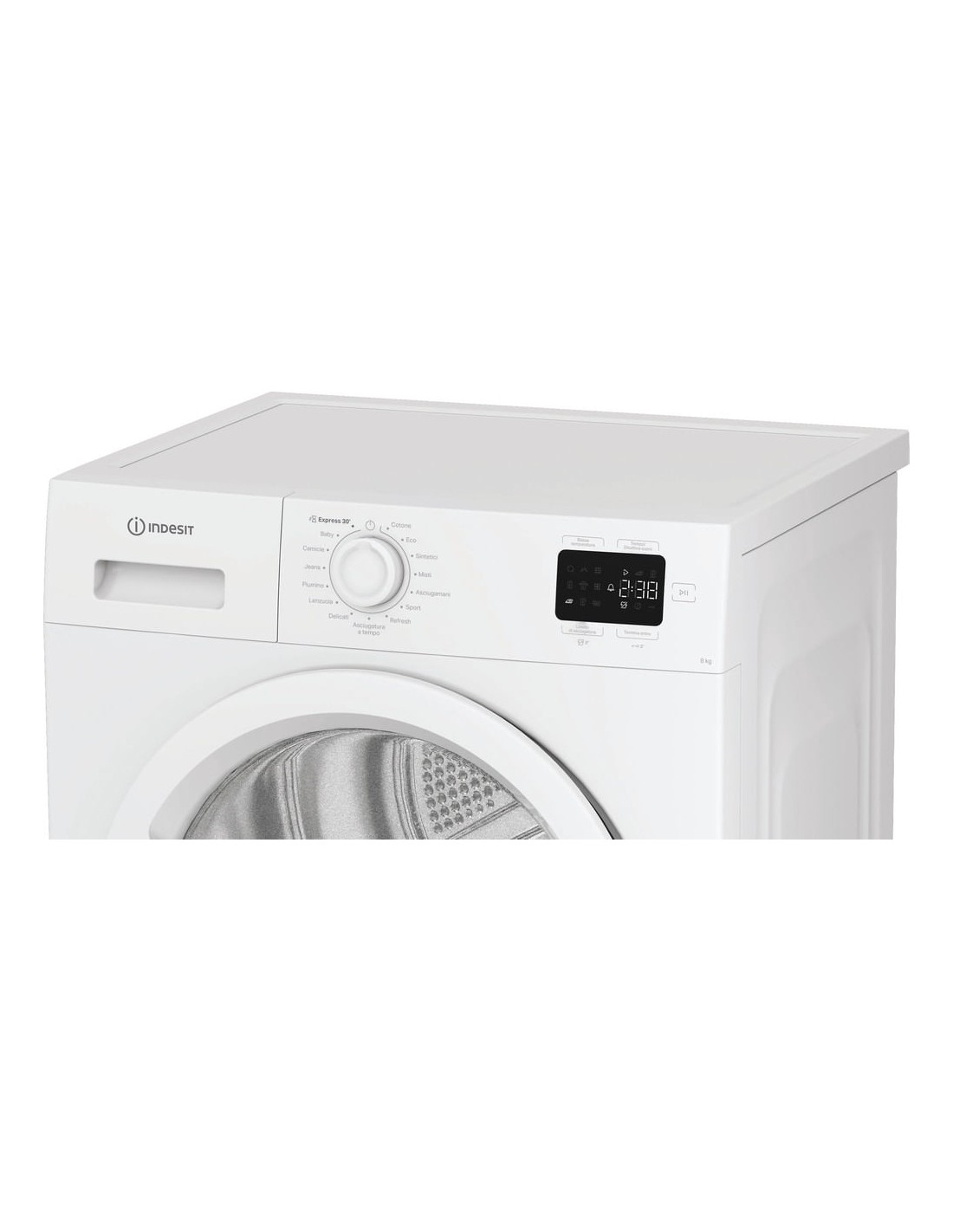 Caratteristiche di questa asciugatrice a libera installazione Indesit: cestello spazioso da 8,0 kg.