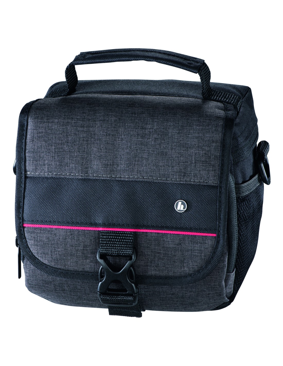 Borsa adatta a contenere e proteggere fotocamere e videocamere digitali con accessori. Passante per cintura, coperchio con gancio e anello di chiusura e tracolla removibile Tracolla Tasca frontale e