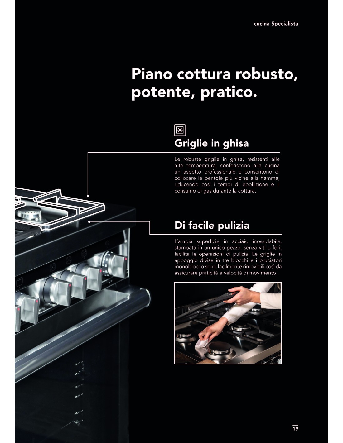 Nuovo design per le griglie in ghisa studiate per ottimizzare gli spazi ed integrarsi perfettamente con il cruscotto della cucina in una continuità estetica e funzionale.
