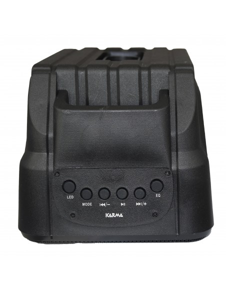 Speaker amplificato con ricevitore bluetooth 5.0, lettore MP3 tramite USB o schede microSDe presa sia microfonica che AUX. Dispone del sistema LRCL (Led Round Circular Light) che genera un'effetto luminoso di grande impatto (disattivabile a piacimento). La batteria ricaricabile tramite presa USB garantisce ore di funzionamento. Possiede tasti per la scelta dell'effetto luminoso e per la selezione di equalizzazione desiderata. Compatta ma potente sarà il vostro miglior compagno nel tempo libero.