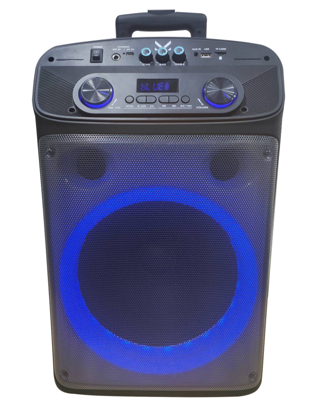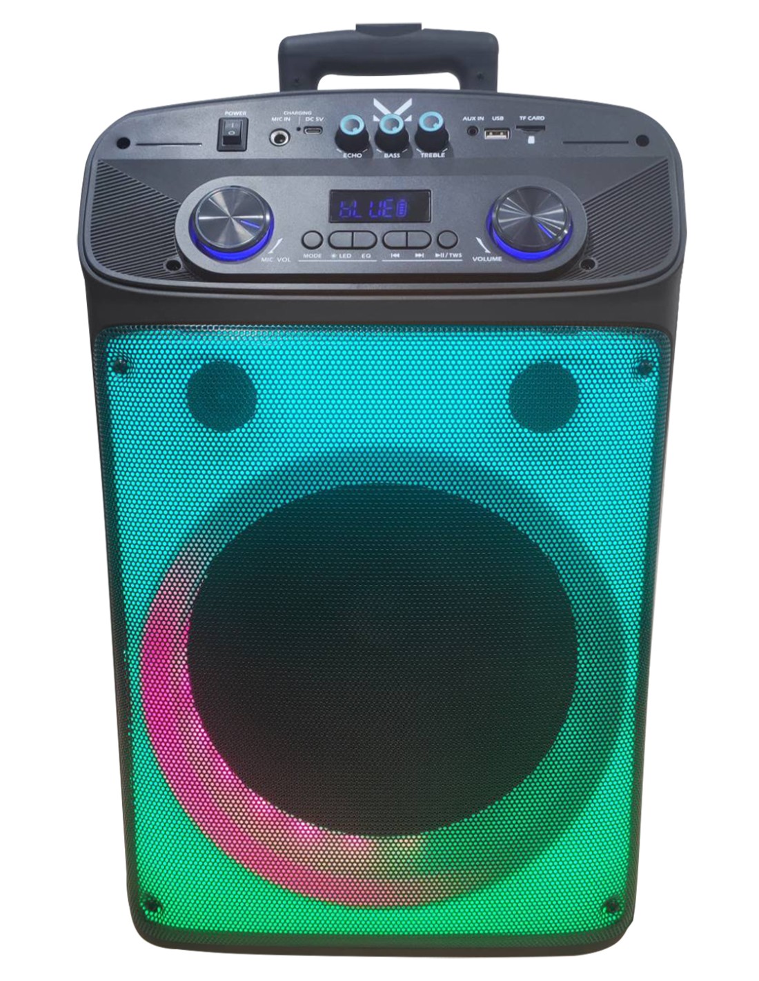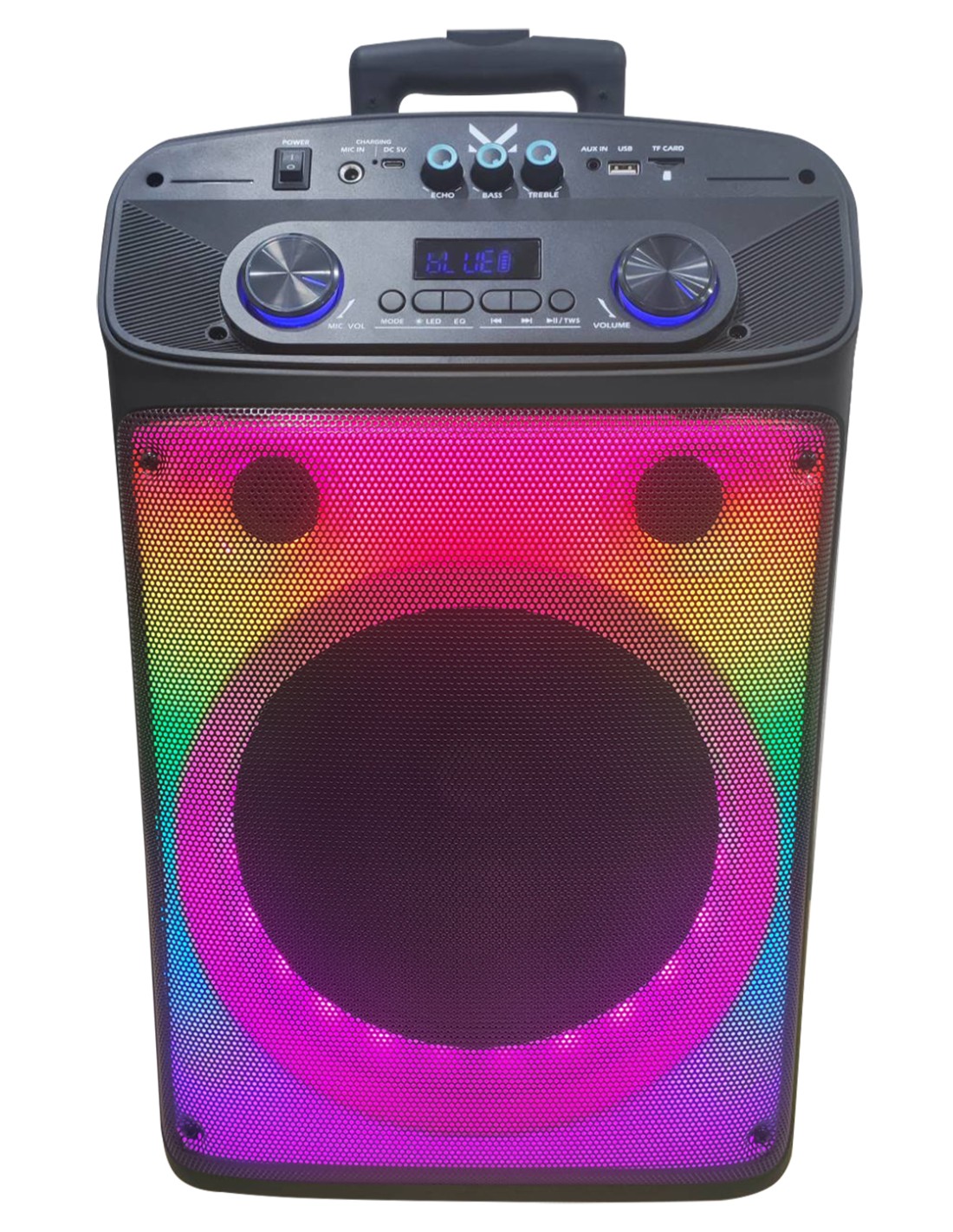 - PARTY SPEAKER A TROLLEY BLUETOOTH CON LUCI LED INGRESSI USB/MICROSD/AUX/MICROFONO TELECOMANDO E MICROFONO A FILO IN DOTAZIONE BATTERIA RICARICABILE INTEGRATA POTENZA D\'USCITA MASSIMA 320W (P.M.P.O