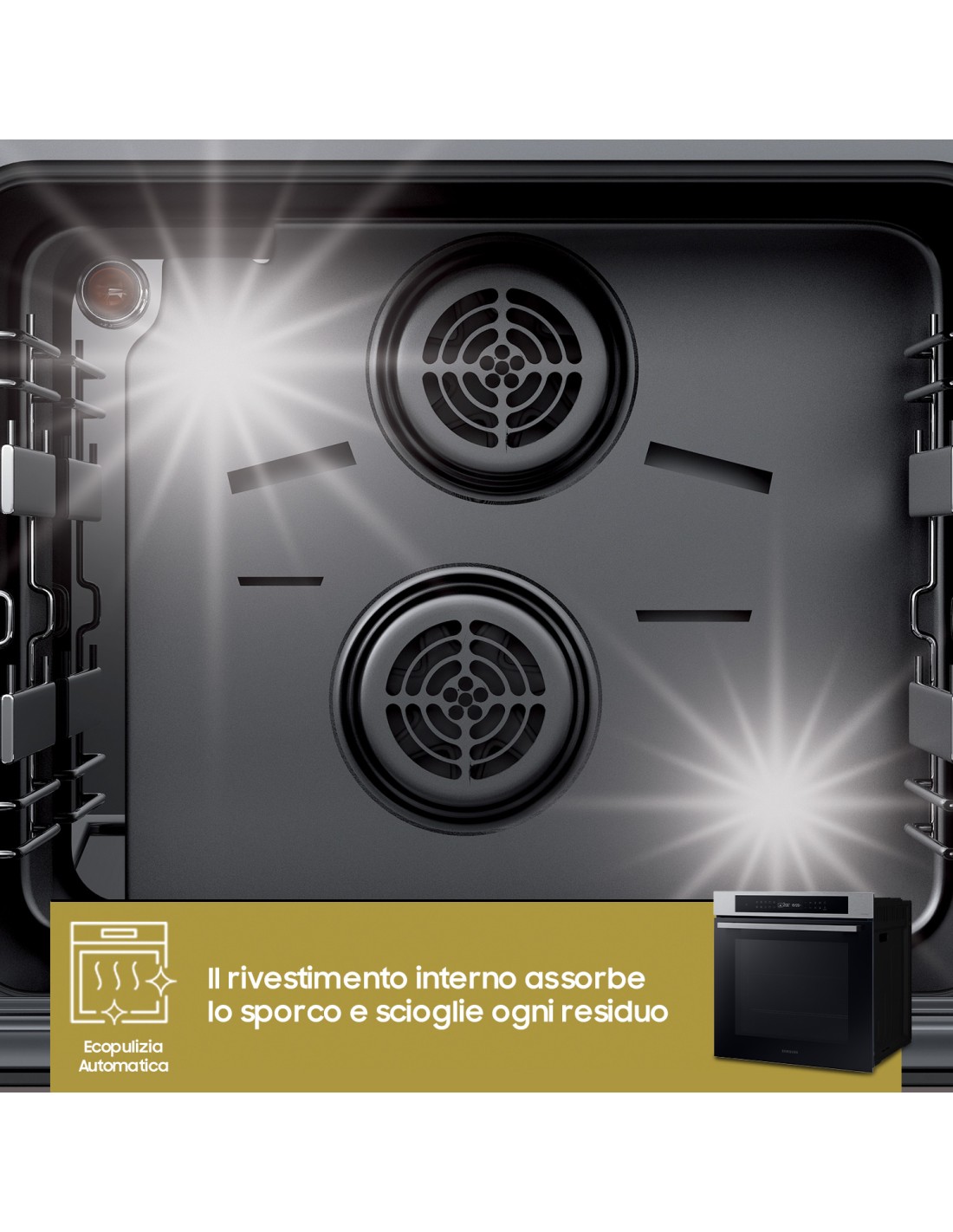 - Forno Samsung multifunzione Serie 4. Gestione da remoto tramite WiFi e oltre 1000 ricette consultabili tramite app SmartThings Cooking. Vapore naturale per aggiungere umidità alle preparazioni e garan
