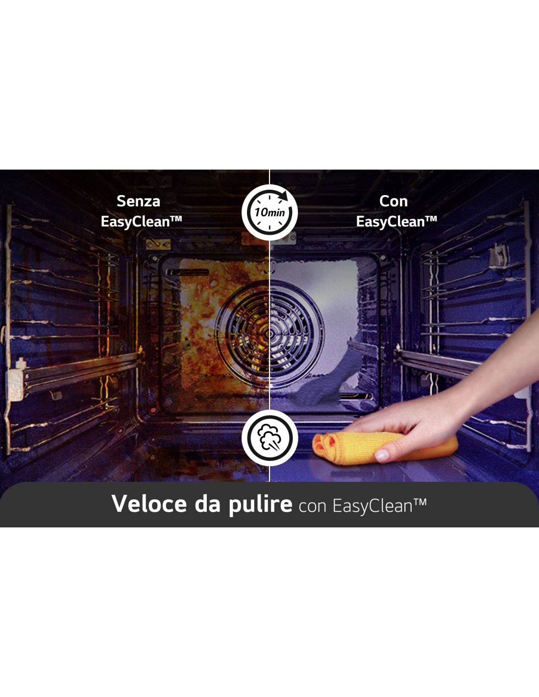 Tecnologia InstaView InstaView è la tecnologia marchio di fabbrica di LG che rende il tuo forno ancora più semplice da usare. Per accendere la luce nel forno non dovrai premere interruttori né girare