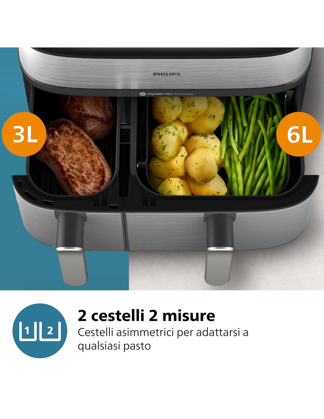PHILIPS - AIRFRYER SERIE 5000 DA 9L COTTURA VAPORE NA555/00 - Inox