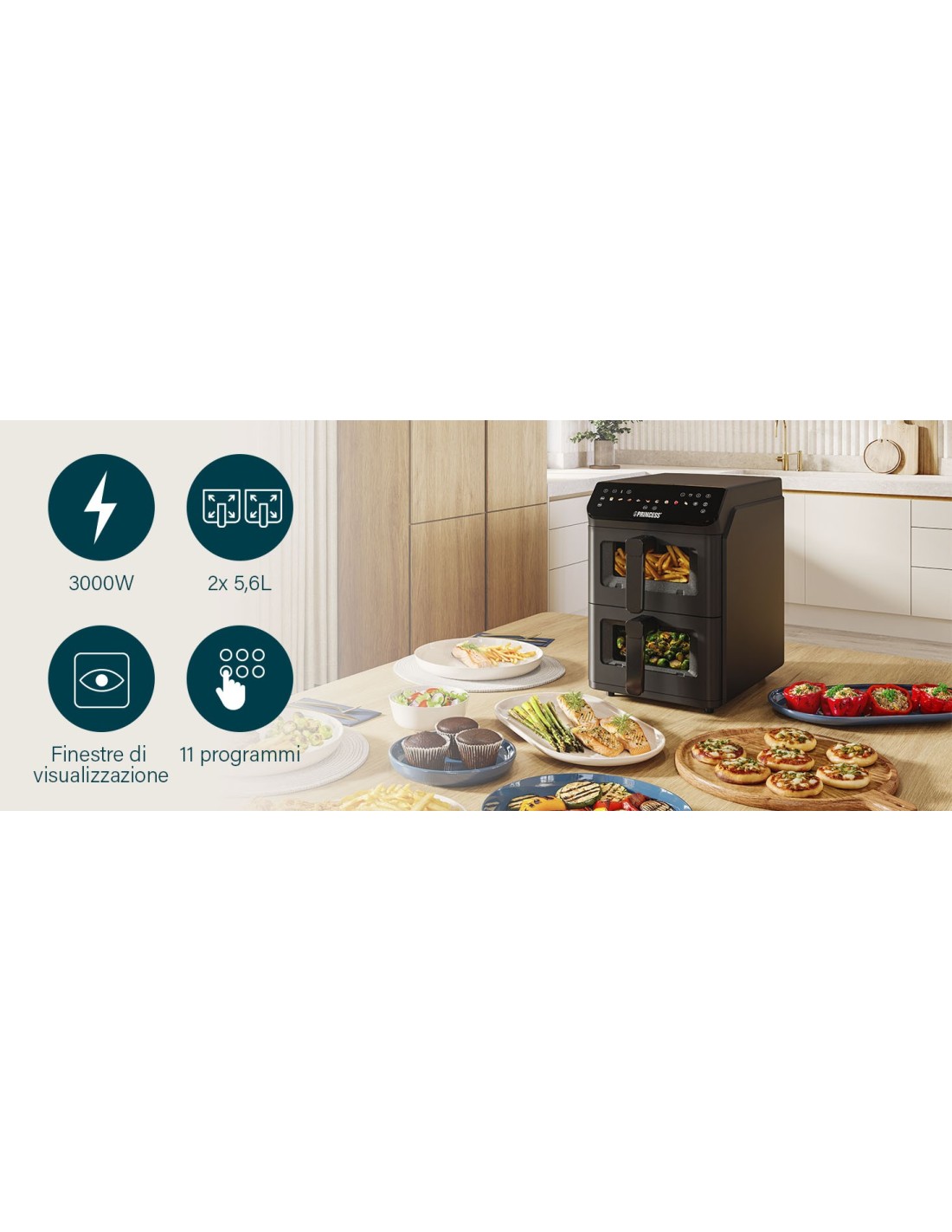 PRINCESS - Friggitrice ad aria DUAL VERTICAL - Nero