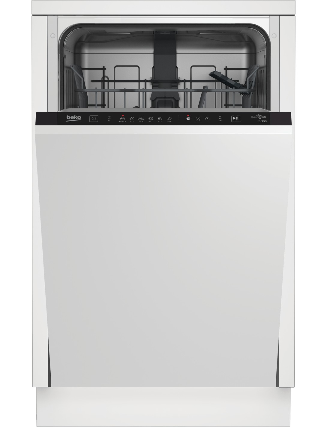 - Beko b300 BDIS16030, Lavastoviglie 45 cm, classe D, 10 coperti, 48 dBA. Posizionamento dell\'apparecchio: A scomparsa totale, Dimensione: Compatta (45 cm), Colore pannello di controllo: Nero. Numero di