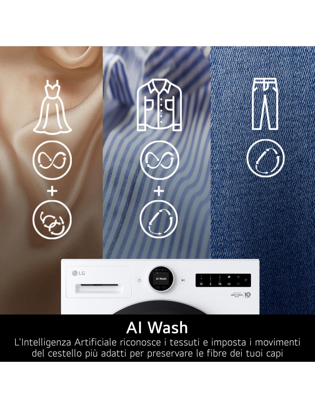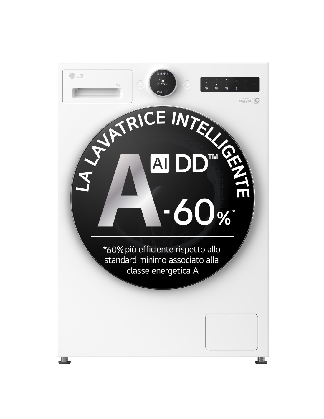 LG F4X9009TWCE Lavatrice 9kg Next AI DD™ X9, Classe A-60%, 1400 giri, Display Easy Circle, Wi-Fi, AI Wash, TurboWash360