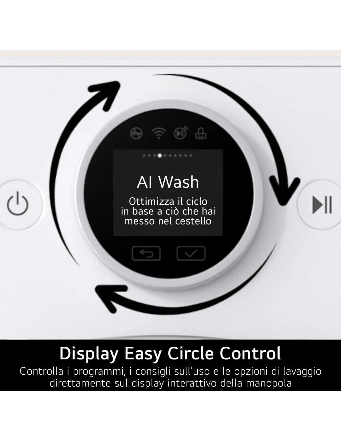 Manopola Easy Circle Control con display integrato Ottimizzazione programmi e opzioni in base alle abitudini di utilizzo Wi-Fi con App ThinQ: Programmi scaricabili, monitoraggio energia e utilizzo, im