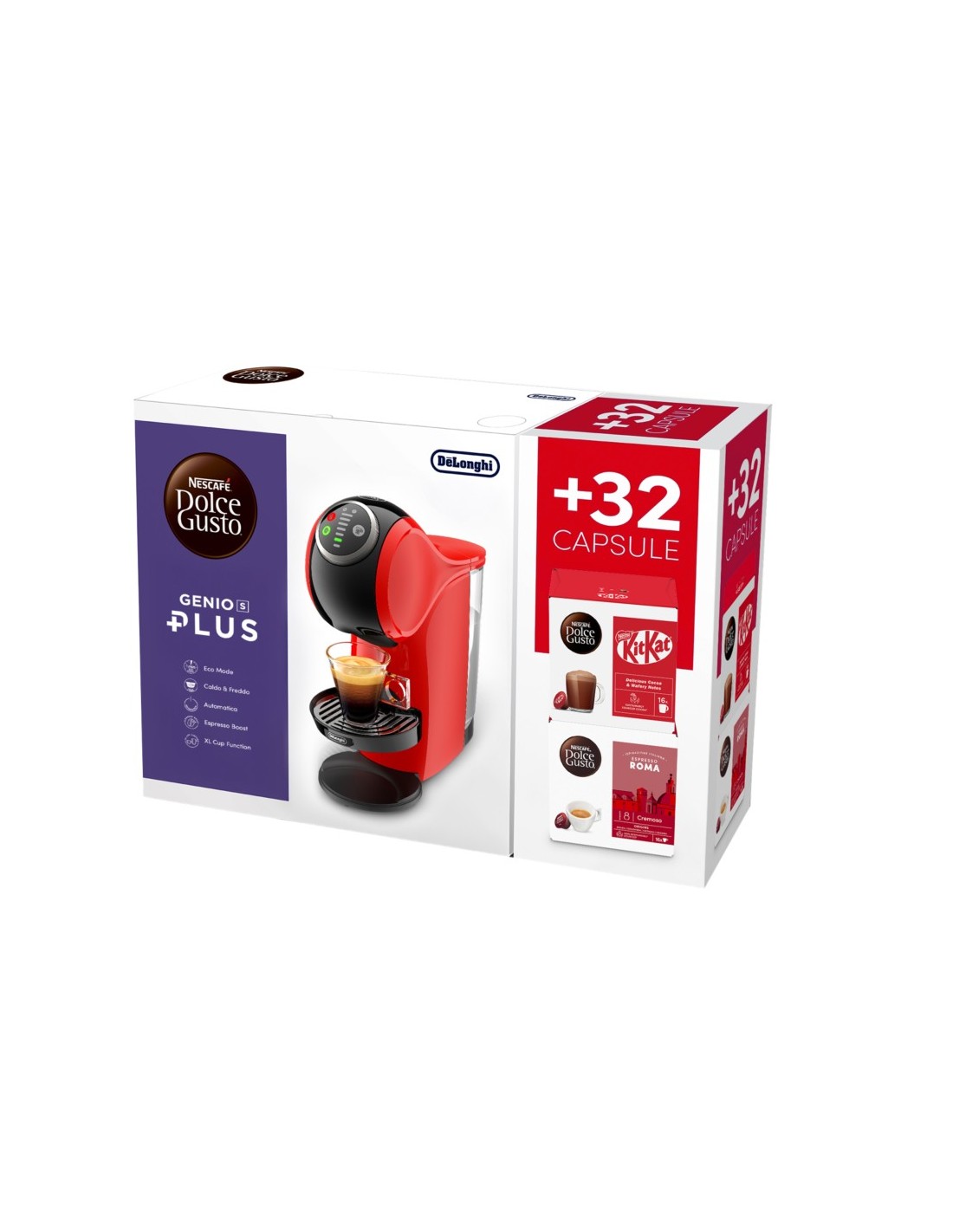 NESCAFÉ Dolce Gusto Genio S incredibilmente compatta, per adattarsi ovunque aggiungendo la perfetta dose di raffinatezza. Incluse due confezioni da 16 capsule ciascuna (1 Espresso Roma + 1 Bevanda al