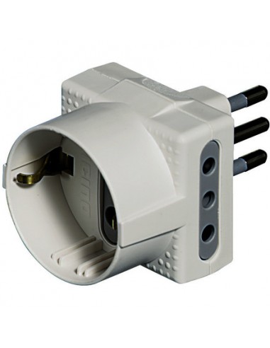 Adattatore Tris - 1 Presa Tedesca 2 Prese 10A, Bianco
