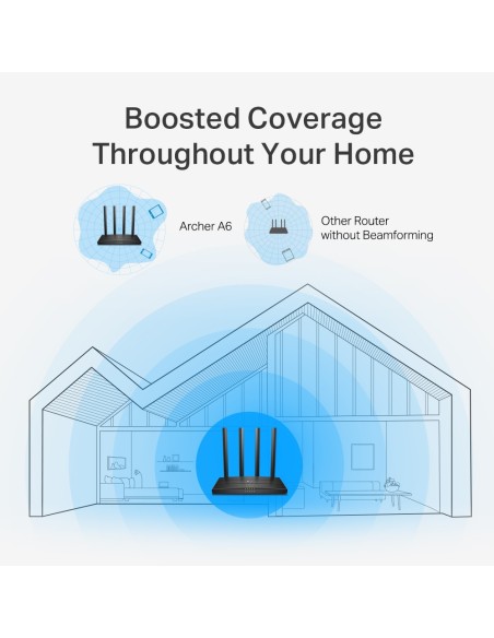 Archer A6 è il Router Wi-Fi di TP-Link in grado di raggiungere velocità di connessione Wi-Fi fino a 1.2Gbps (867Mbps in 5Ghz + 300Mbps in 2.4GHz). Le 4 antenne esterne sono dotate di tecnologia Beam