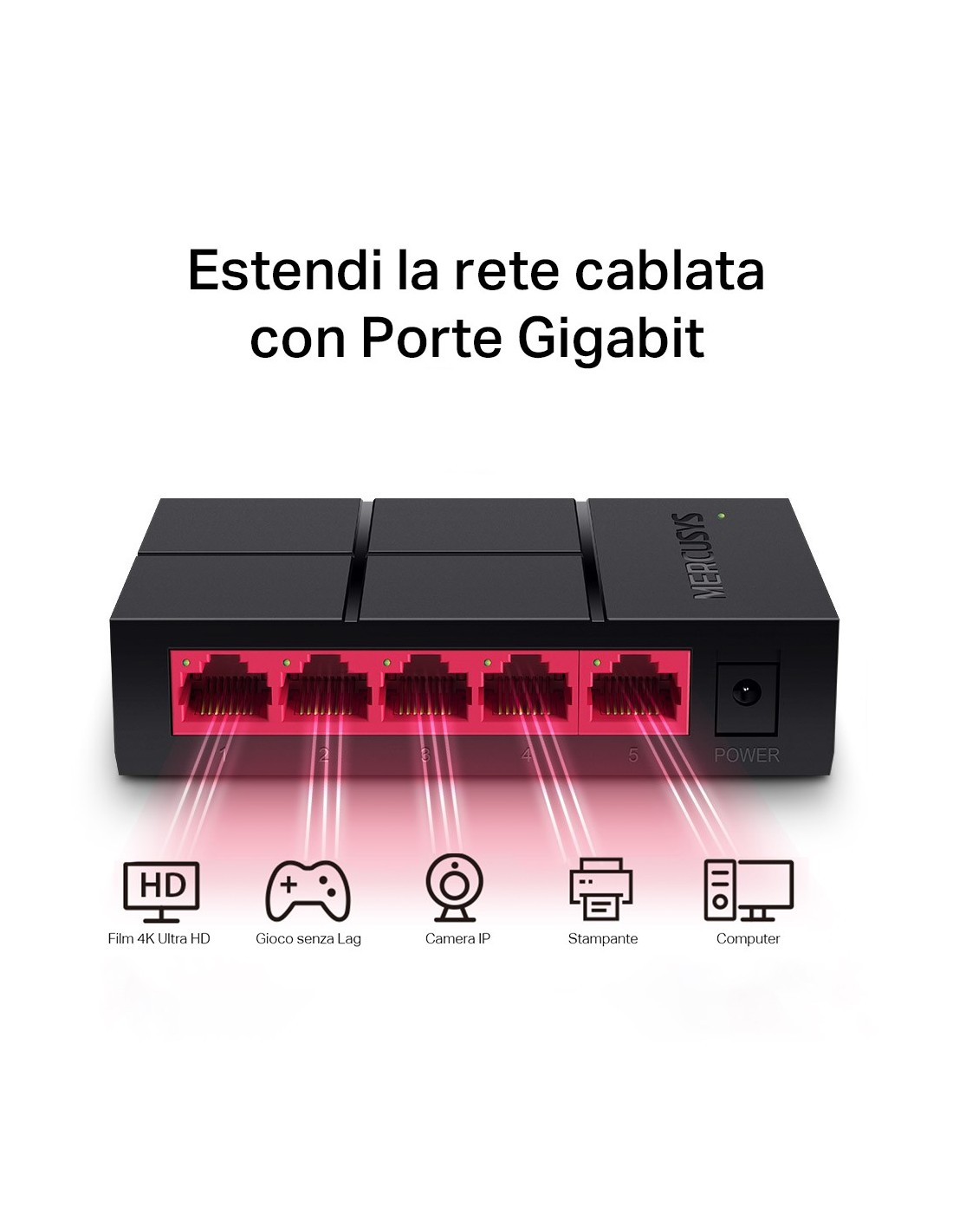 MERCUSYS - 5-PORT 10/100/1,000 MBPS DESKTOP SWITCH - nero