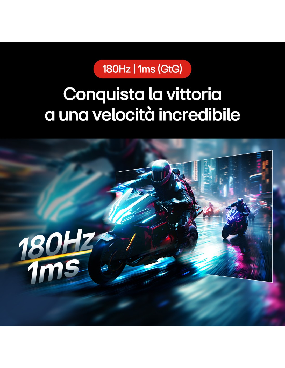 - 180Hz, 1ms (GtG), AMD FreeSync, VESA Adaptive Sync, Black Stabilizer, Dynamic Action Sync, Crosshair, Contatore FPS