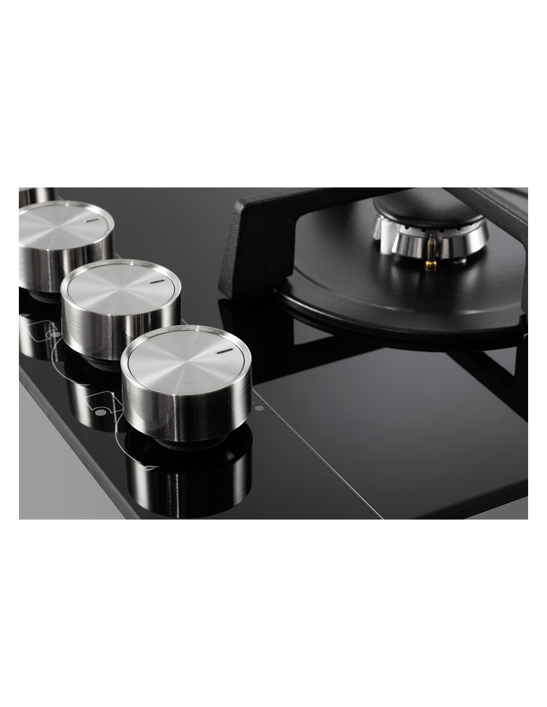 - Piano gas on glass 60 cm\nVetro temperato nero\n4 bruciatori gas di cui 1 doppia corona da 3,5 kW\nGriglie in ghisa\nManopole metallo spazzolato