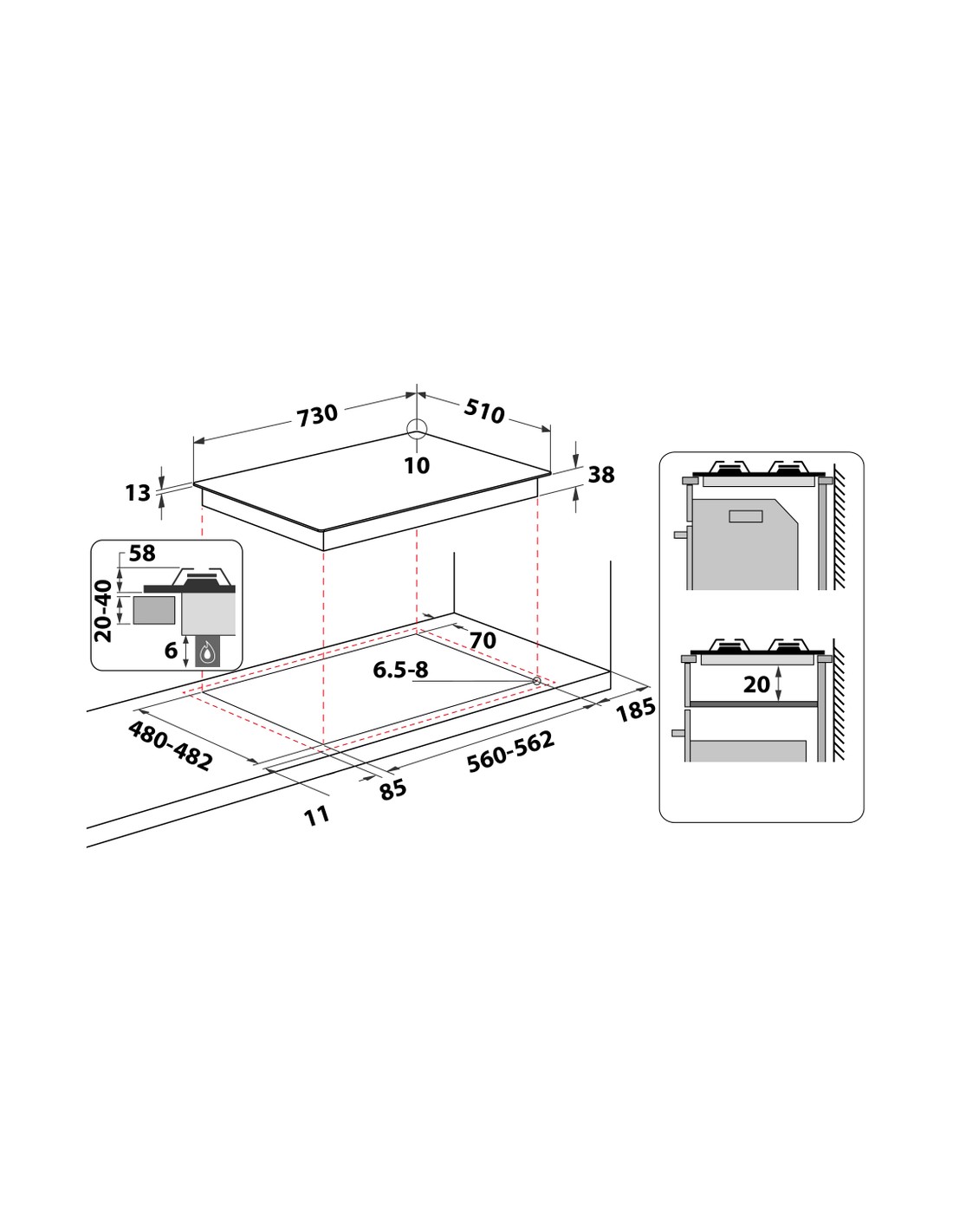 - Larghezza incasso-mm