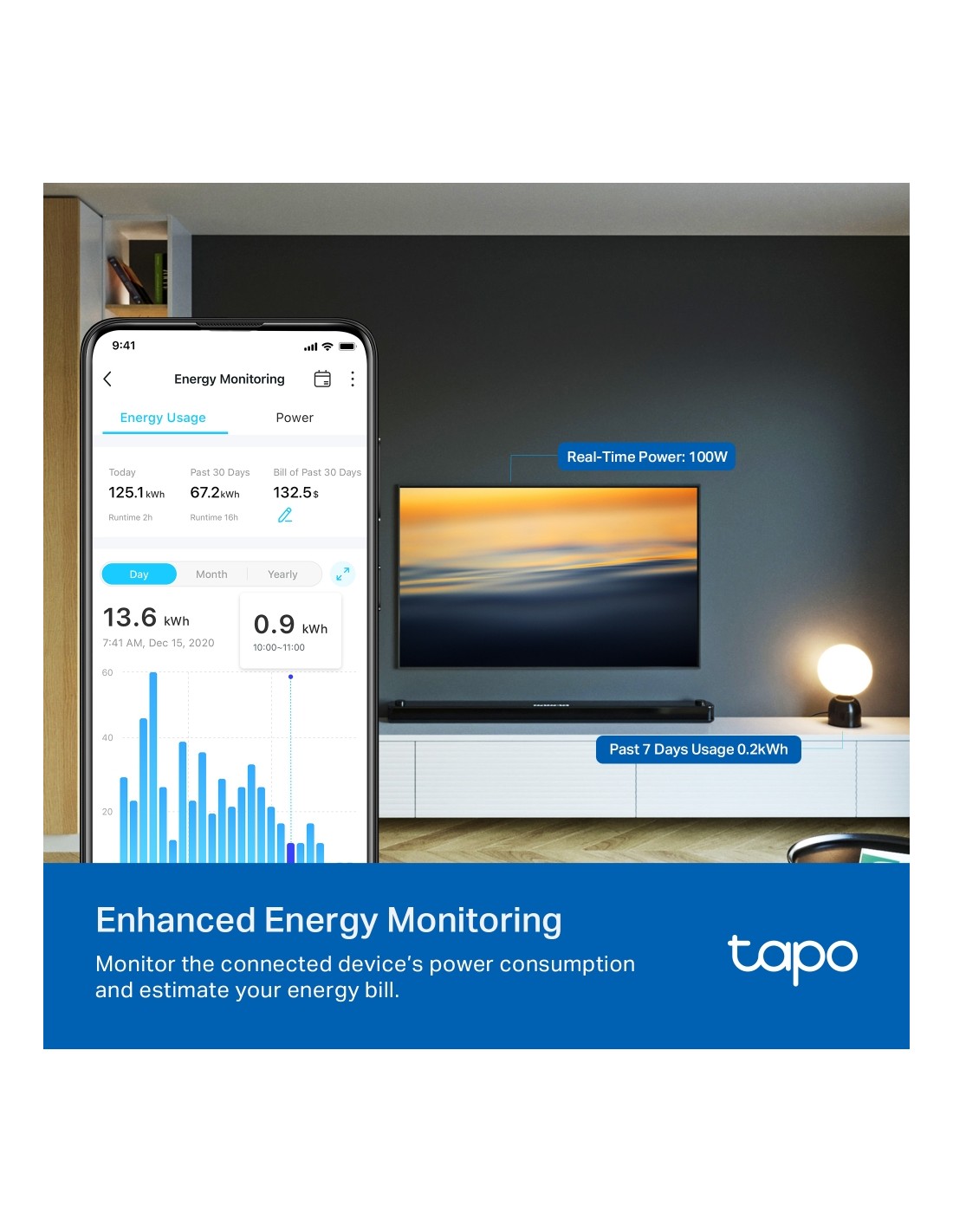 Con Tapo P105 puoi gestire comodamente, anche da remoto, l\'accensione e lo spegnimento dei tuoi elettrodomestici. Con l\'app Tapo potrai creare timer on/off e programmazioni giornaliere per organizzare