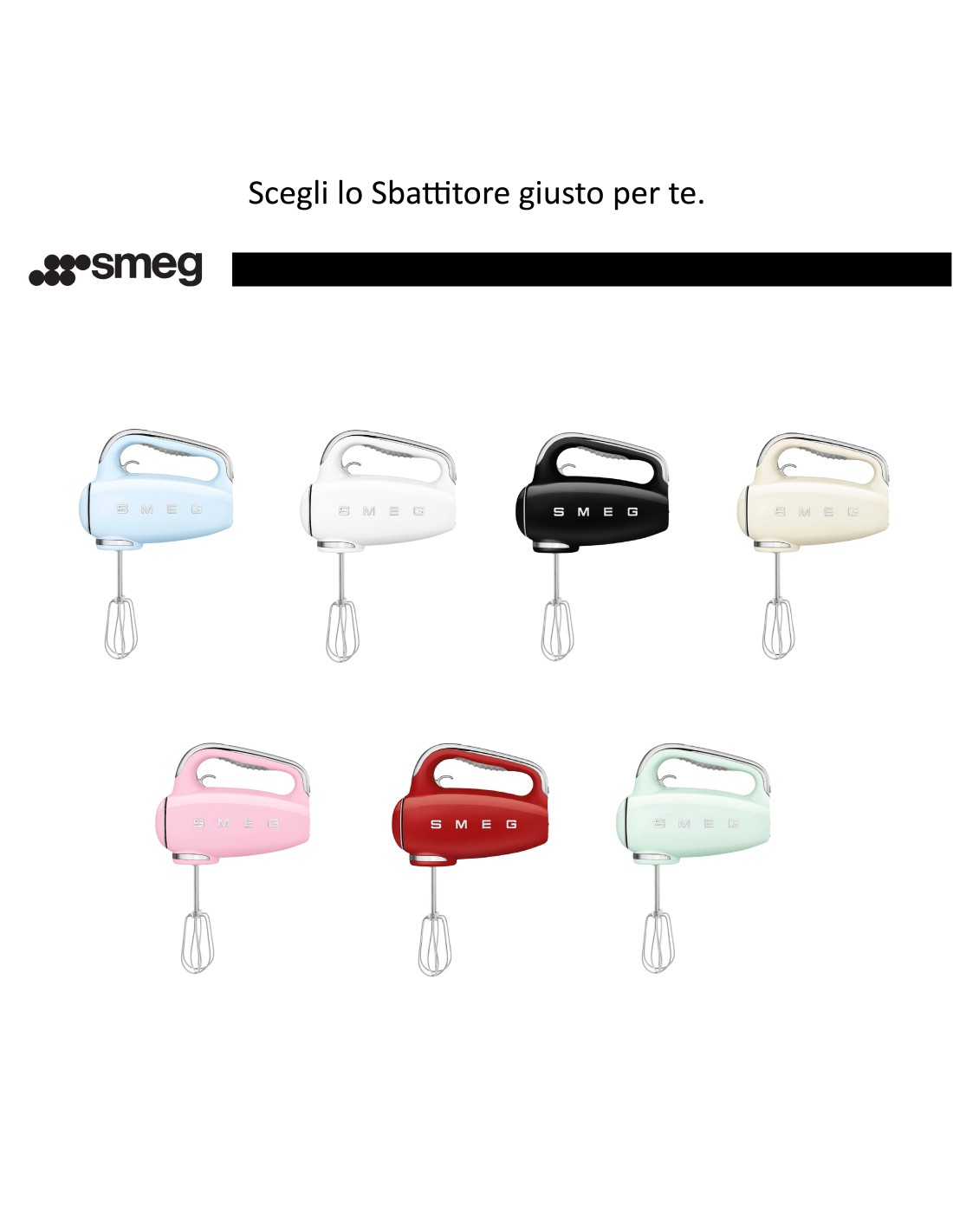 - Smeg Sbattitore 50\'s Style – Nero LUCIDO – HMF01BLEU INTERFACCIA USER FRIENDLY Il pannello comandi è impreziosito da un display LED retro illuminato con indicazione di velocità e tempo di utilizzo: u