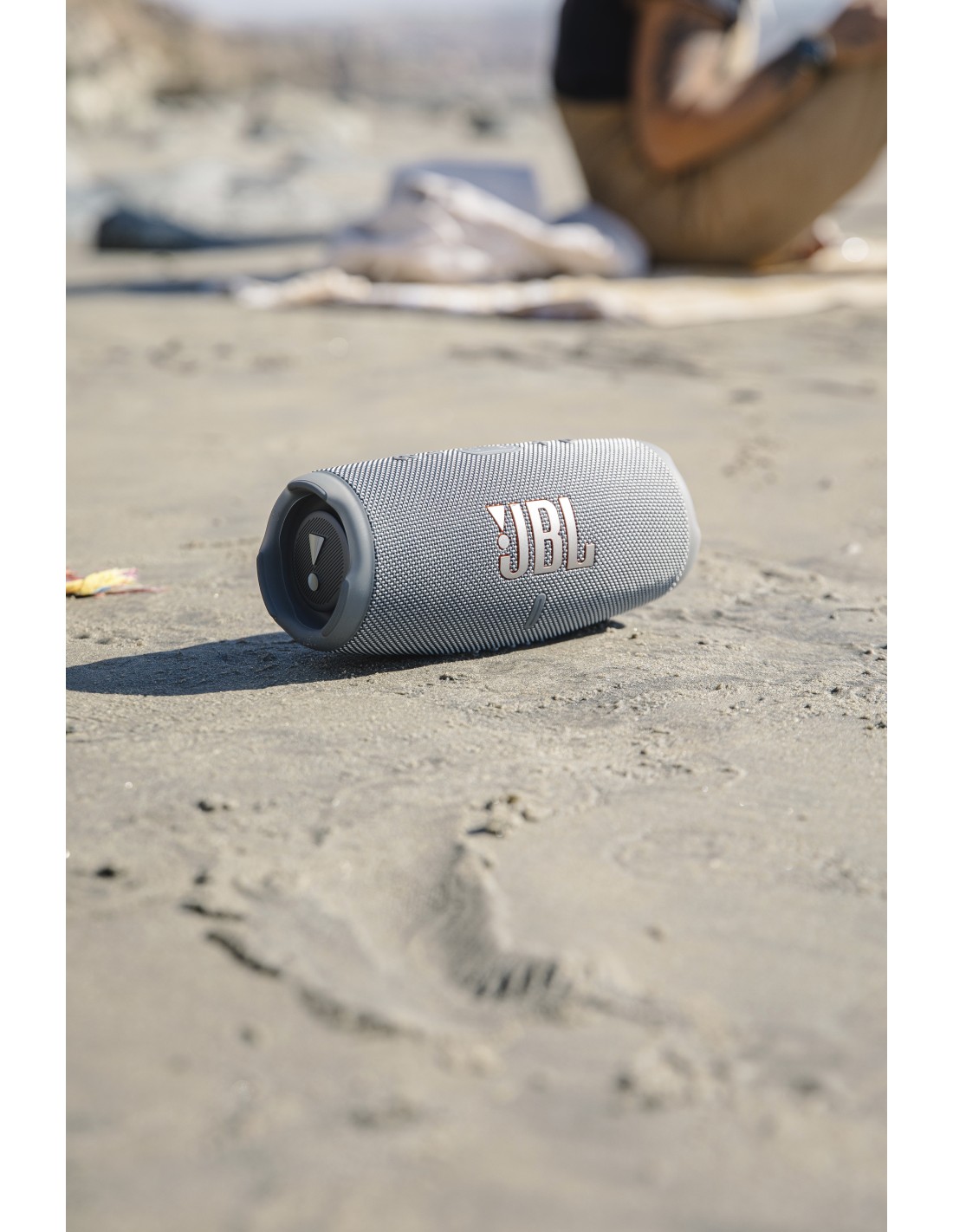 Riproduci e ricarica senza sosta. Porta la festa con te, indipendentemente dal meteo. Il diffusore JBL Charge 5 offre l’entusiasmante JBL Original Pro Sound, con i suoi driver a lunga escursione, un t