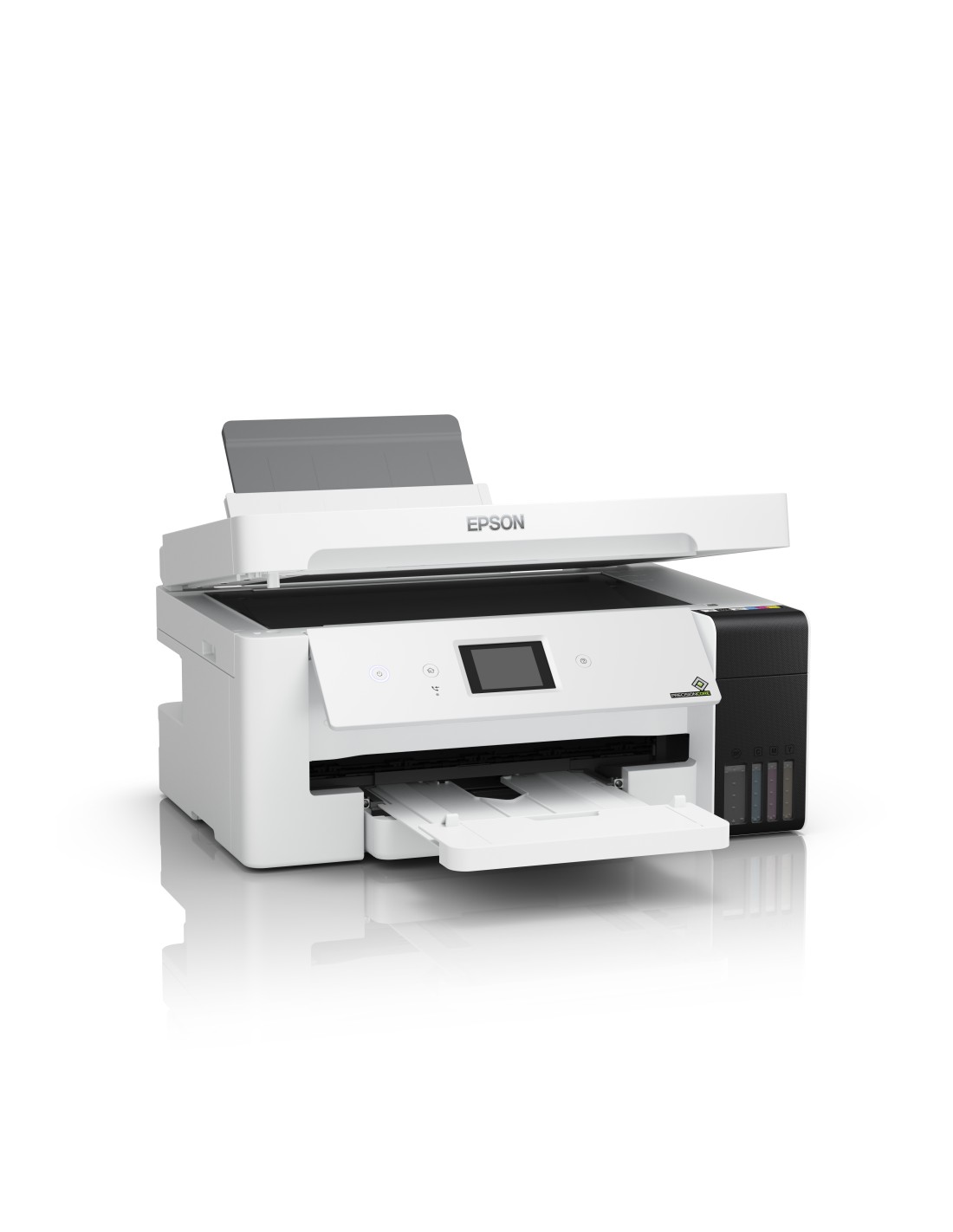 La compatta EcoTank ET-15000 offre stampa, scansione, copia e fax in formato A4, oltre all’opzione per stampare A3+ dal supporto di alimentazione posteriore. Inoltre, il display LCD semplifica la stampa senza PC.