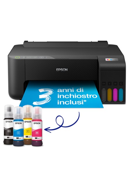 - Epson EcoTank ET-1810 - Stampante multifunzione inkjet 3-in-1 con serbatoi ricaricabili - Wireless, USB, A4 Bye bye cartucce Scopri i vantaggi di una stampa da mobile a un costo pagina ultraconvenie