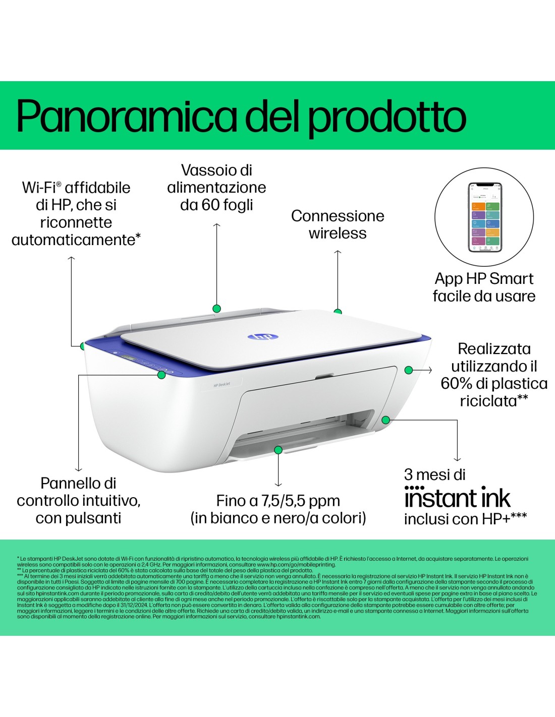 - Risoluzione fino a 1200 dpi – Stampante idonea al servizio Instant Ink