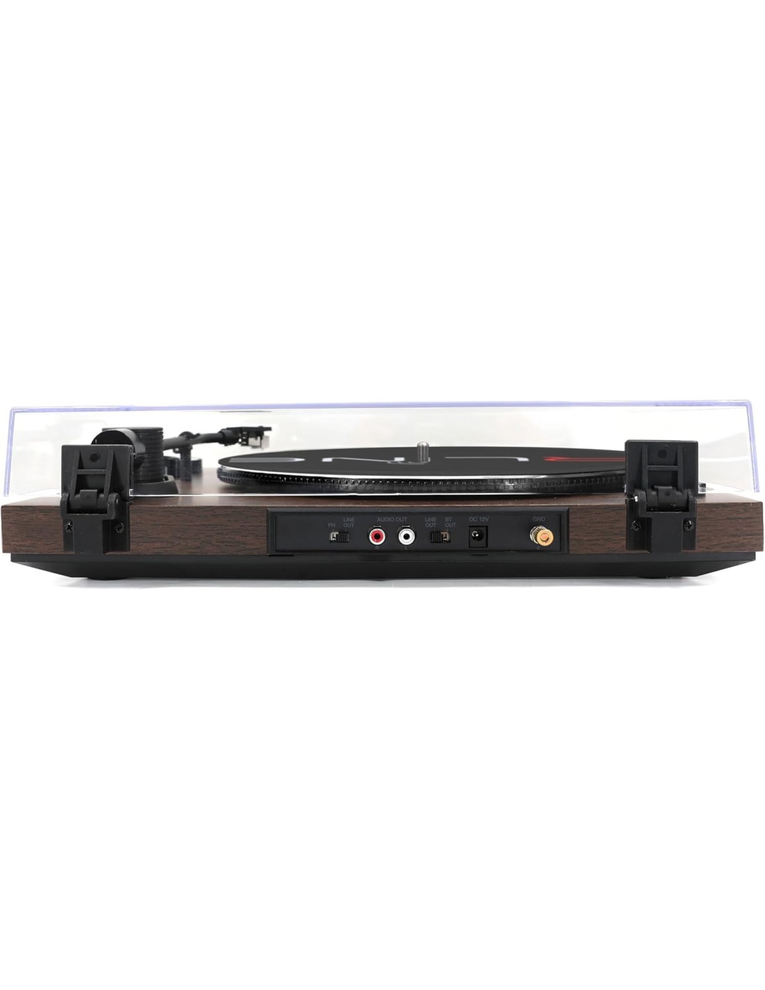 - Braccio in metallo e manopole in metallo Testina Moving Magnet (AT3600) Manopola Pitch Control (regolazione fine della velocità) Trasmettitore Bluetooth integrato per cuffie o speaker BT wireless Conn