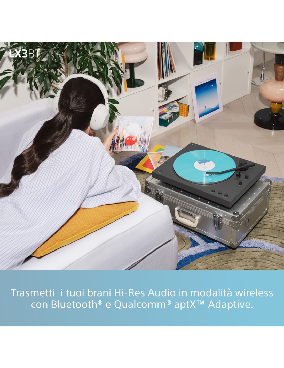 - Giradischi con Bluetooth, collegamento rapido a dispositivi di riproduzione wireless come Speakers o cuffie Bluetooth, trasmissione a cinghia, piatto in Alluminio pressofuso