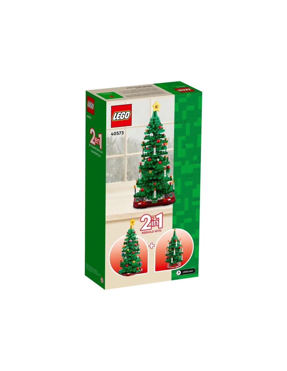Crea un accattivante pezzo da esposizione con questo magnifico kit di costruzione Albero di Natale LEGO® (40573). L’albero colorato, adornato con decorazioni e candele, si posa su un tappetino ornamen