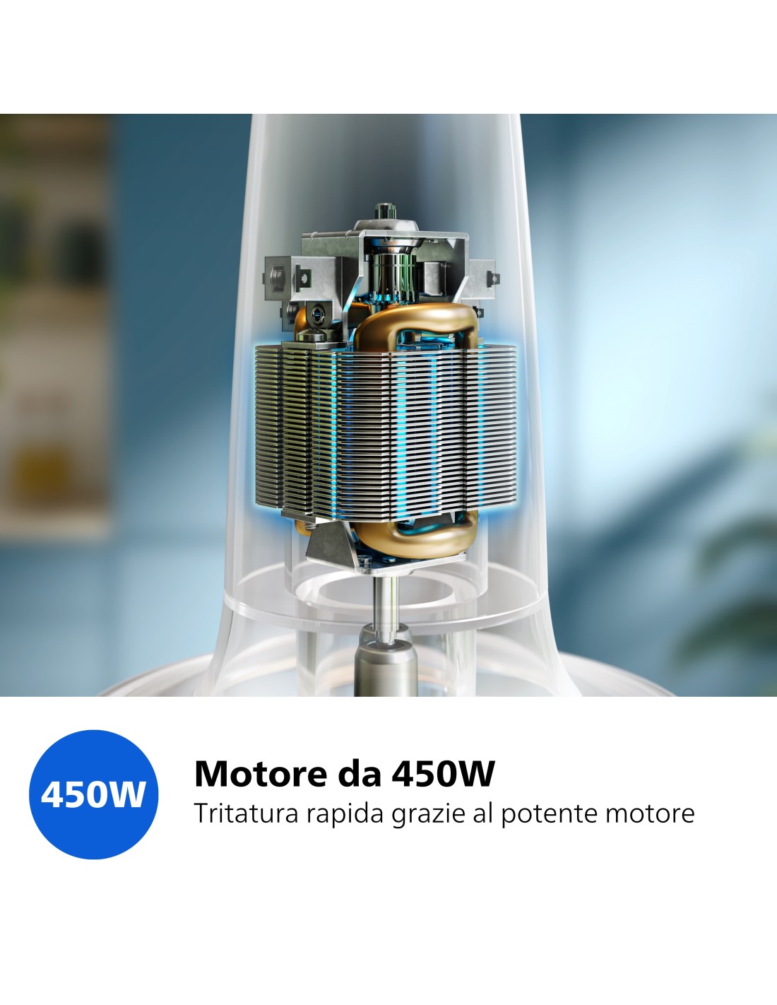 Tritautto Philips Serie 3000 HR1501/00 Tritatura potente grazie alla tecnologia PowerChop • Risultati rapidi e perfetti grazie al motore da 450W • Prepara le tue salse e salse preferite in un recipie