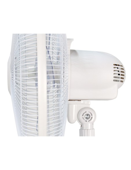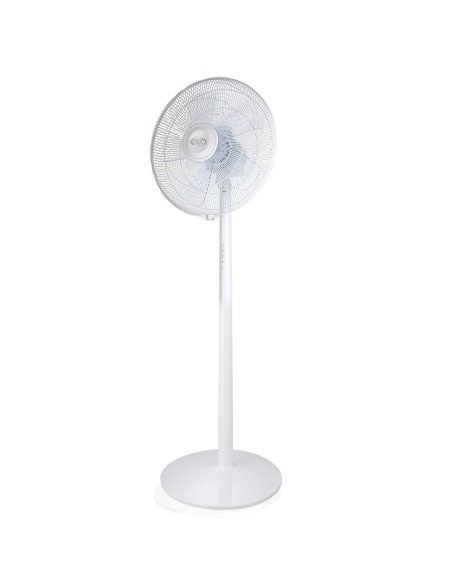 Ventilatore a piantana (Standy evo) dal design minimal ed elegante, di colore bianco puro oppure nero “high-gloss” 5 pale trasparenti in AS, materiale di qualità superiore, 40 cm di diametro Particol