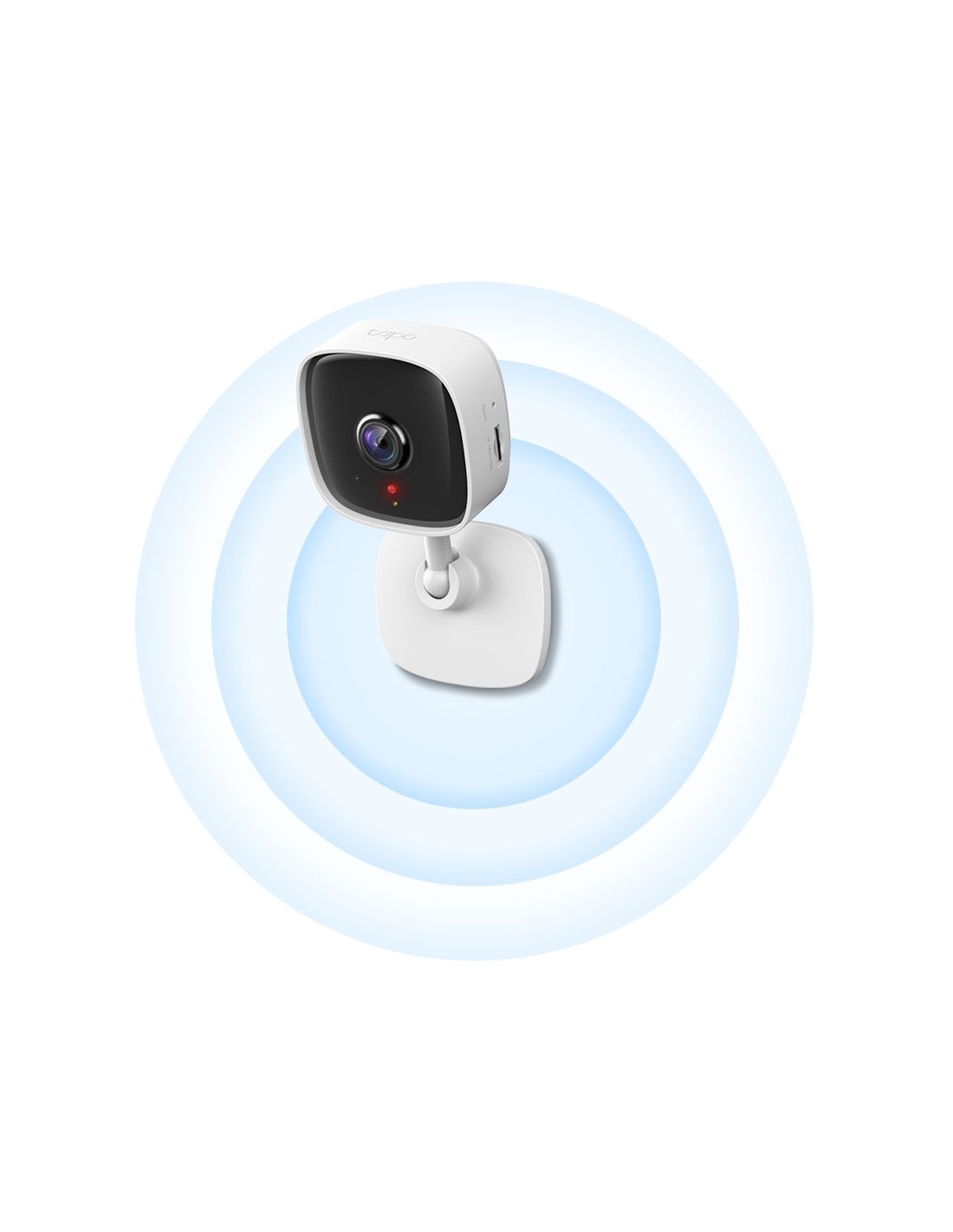 Telecamera di sorveglianza Full-HD 1080p, supporta rete Wi-Fi 2.4GHz. Gestione da remoto tramite app Tapo per dispositivi Android e iOS. Dotata di sensore di movimento, visione notturna, allarme integ